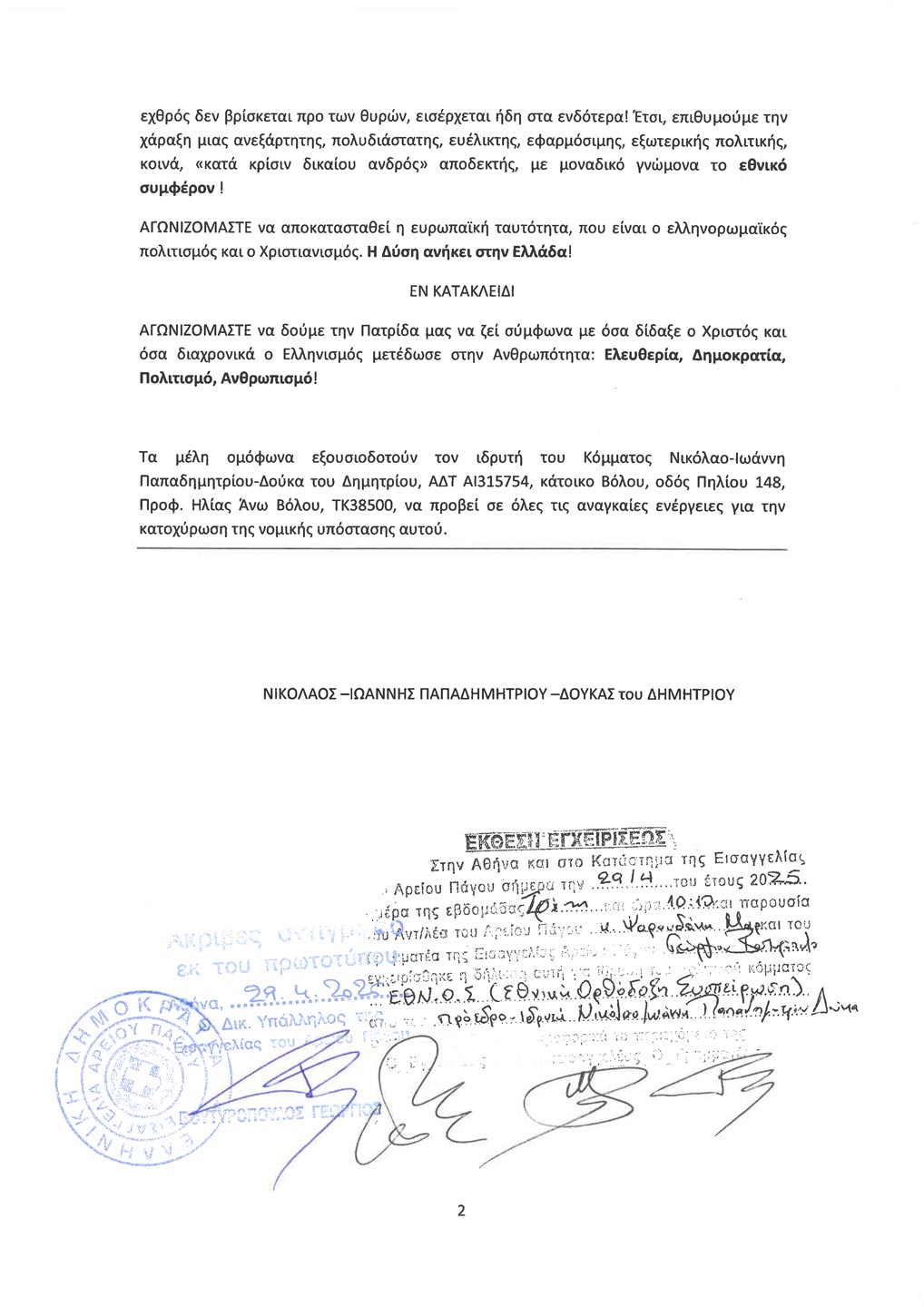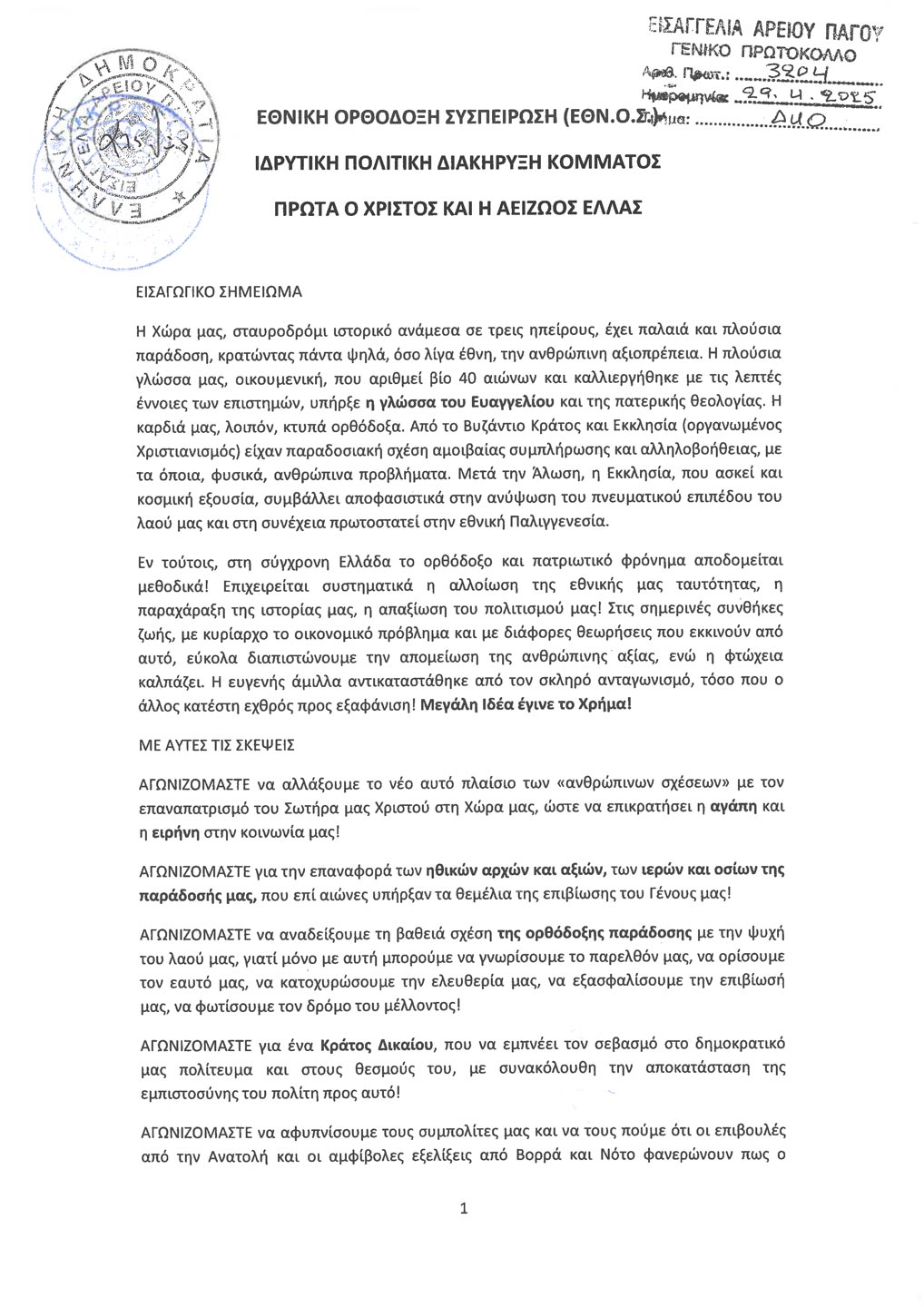 Η εμμονή τους, όμως, σε ματαιόδοξες και αλλαζονικές αξιώσεις, αδόκιμα πολλάκις προβαλλόμενες, ασυμβίβαστες, μάλιστα, και με την έννοια του Χριστιανού και Πατριώτη, σε συνδυασμό με την από μέρους μου εκτίμηση του γεγονότος ότι το μεγαλύτερο μέρος των απαιτούμενων υπογραφών είχε συγκεντρωθεί με δικές τους προσπάθειες, με οδήγησαν ακούσια στην παραίτηση από την θέση του Προέδρου.